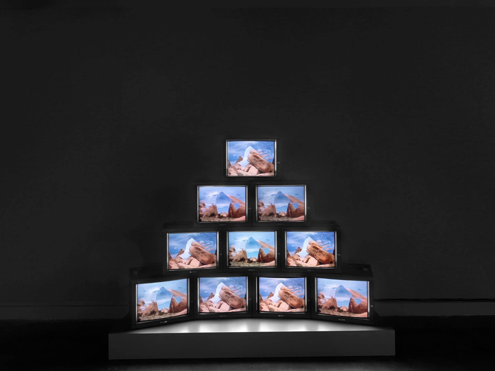 It’s too late now, though, for me, and as I take in the show I bring along my newly ignited sense of late-twentieth-century sentimentality. I find the solid, square Sony televisions enclosing pieces such as Geomania (1986) comforting, the rolling media carts complete with thickly coiled headphone cords romantic, the buzzing distortions and geometric sequences audacious and ecstatic.