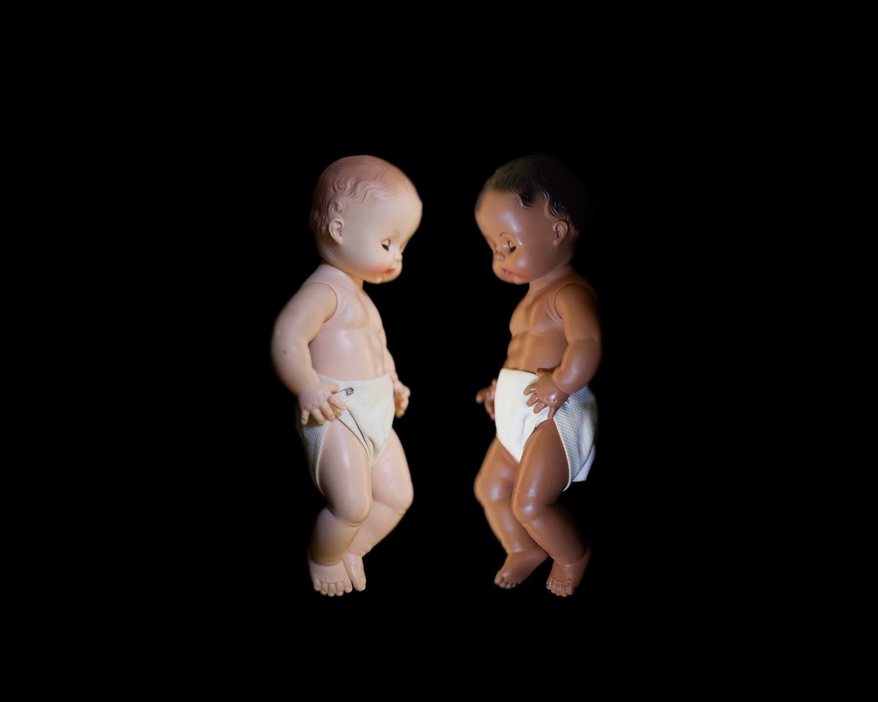 Photograph by Wendel A. White of Baby Dolls from the Kenneth and Mamie Clark collection, Smithsonian National Museum of African American History and Culture; Gift of Kate Clark Harris in memory of her parents Kenneth and Mamie Clark, in cooperation with the Northside Center for Child Development Washington, DC. © Wendel White.