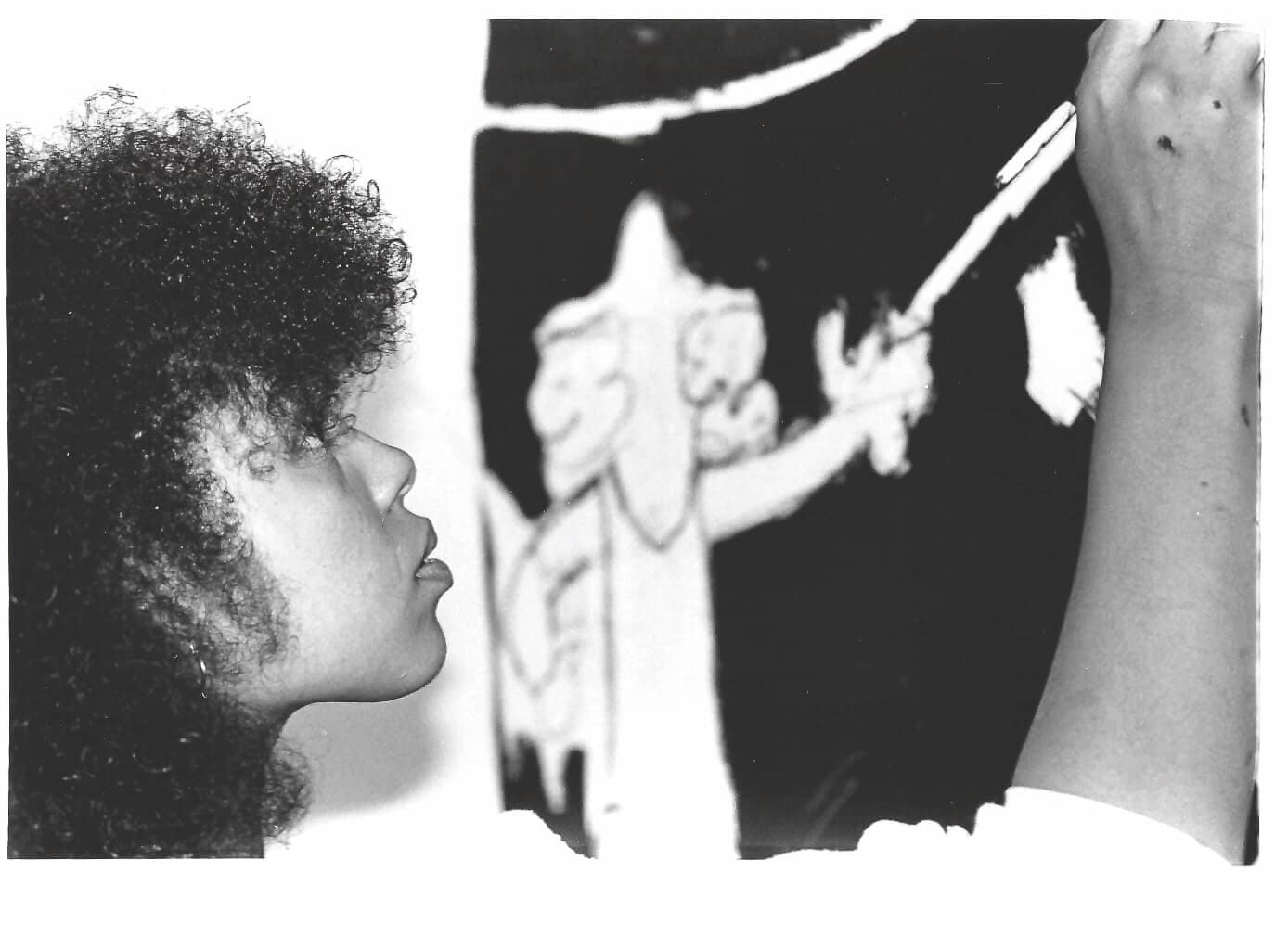 Donnamaria Bruton working on a public mural in Detroit, c. 1970s. Courtesy of the Estate of Donnamaria Bruton and Cade Tompkins Projects.