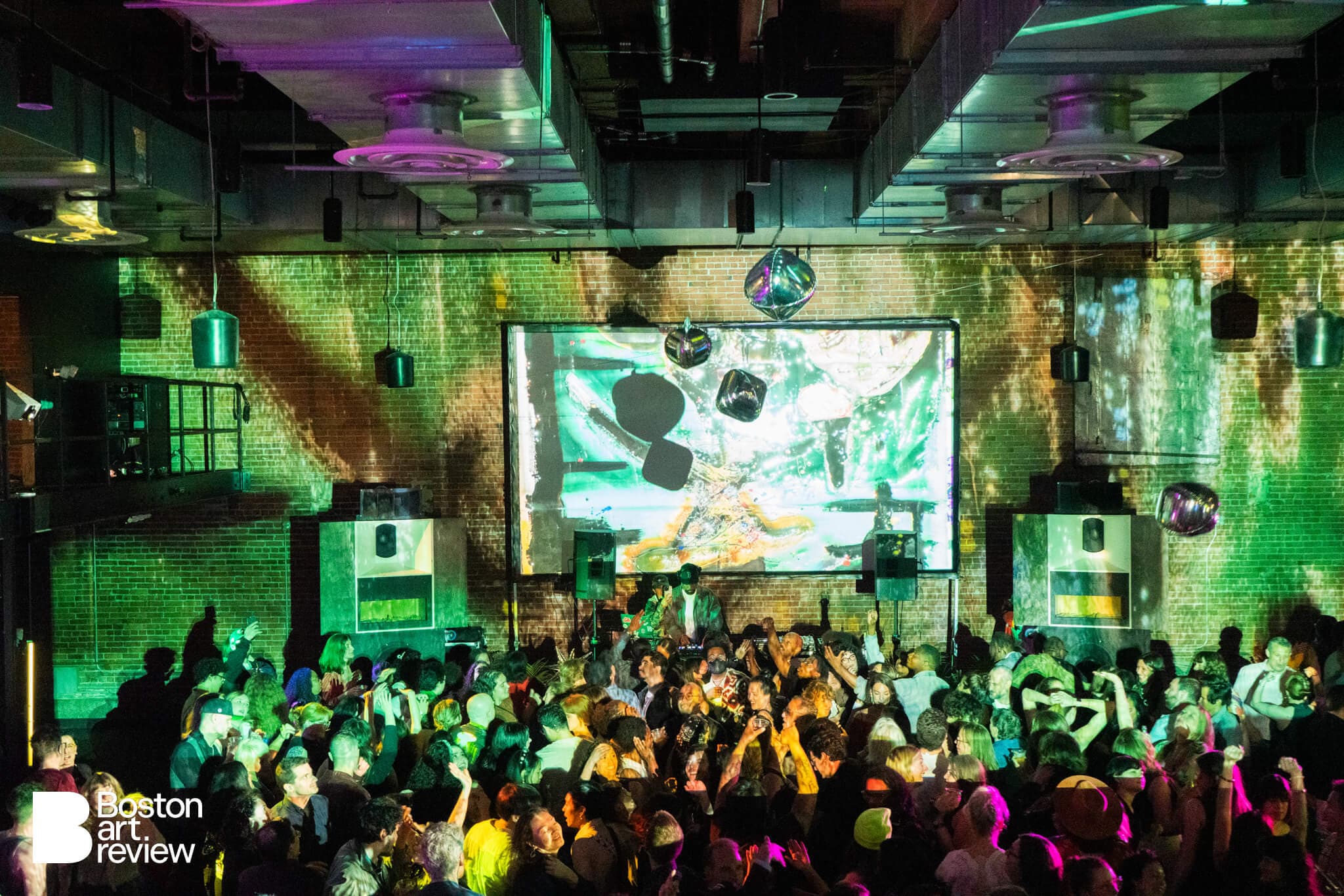 Projections were provided by Illuminus and Jim Manning, featuring work by Maria Finkelmeier, Ariel Grubb, Jack Gruman, Nelly Kate, Dirt Lux, Marcel Marcel, Janella Mele, Theadora Nedvins, Cesar Perez, Shey ‘Rí Acu’ Rivera Ríos, and Allison Tanenhaus. The immersive video sculpture under the stairs was created by Ravinda “D” Wibowo.
