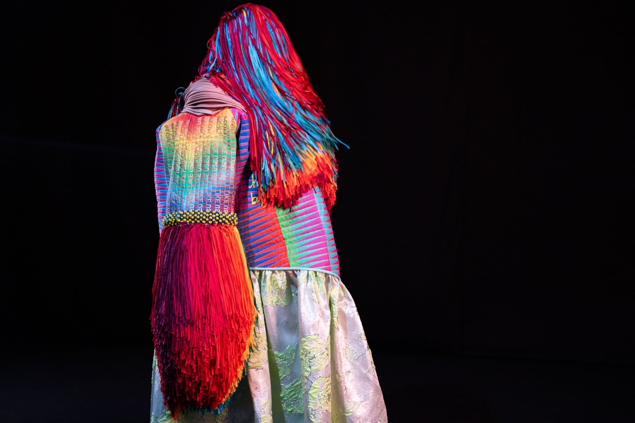 Choctaw and Cherokee artist Jeffrey Gibson brings his signature vibrant kaleidoscopic designs to a new installation in MASS MoCA’s Building 5, one that fills the football-field-size gallery space with active conversations between the past and future of queer and Indigenous worldmaking. The project is an immersive chorus of voices and bodies, with seven 12✕12-foot glass stages decorated with patterns and text serving as platforms for queer, Indigenous, and two-spirit performers. Multicolored garments covered in beads, jingles, and other materials—informed by traditional regalia from spiritual ceremonies—will be suspended from the ceiling and worn during performances, and the video installation Your Spirit Whispers in My Ear (2024) will feature crowd-sourced scenes from drag culture, new and old. Alongside this exhibition, Gibson will create a new mural in Dewey Square in collaboration with MASS MoCA and the Rose Kennedy Greenway, beginning September 19, 2024.