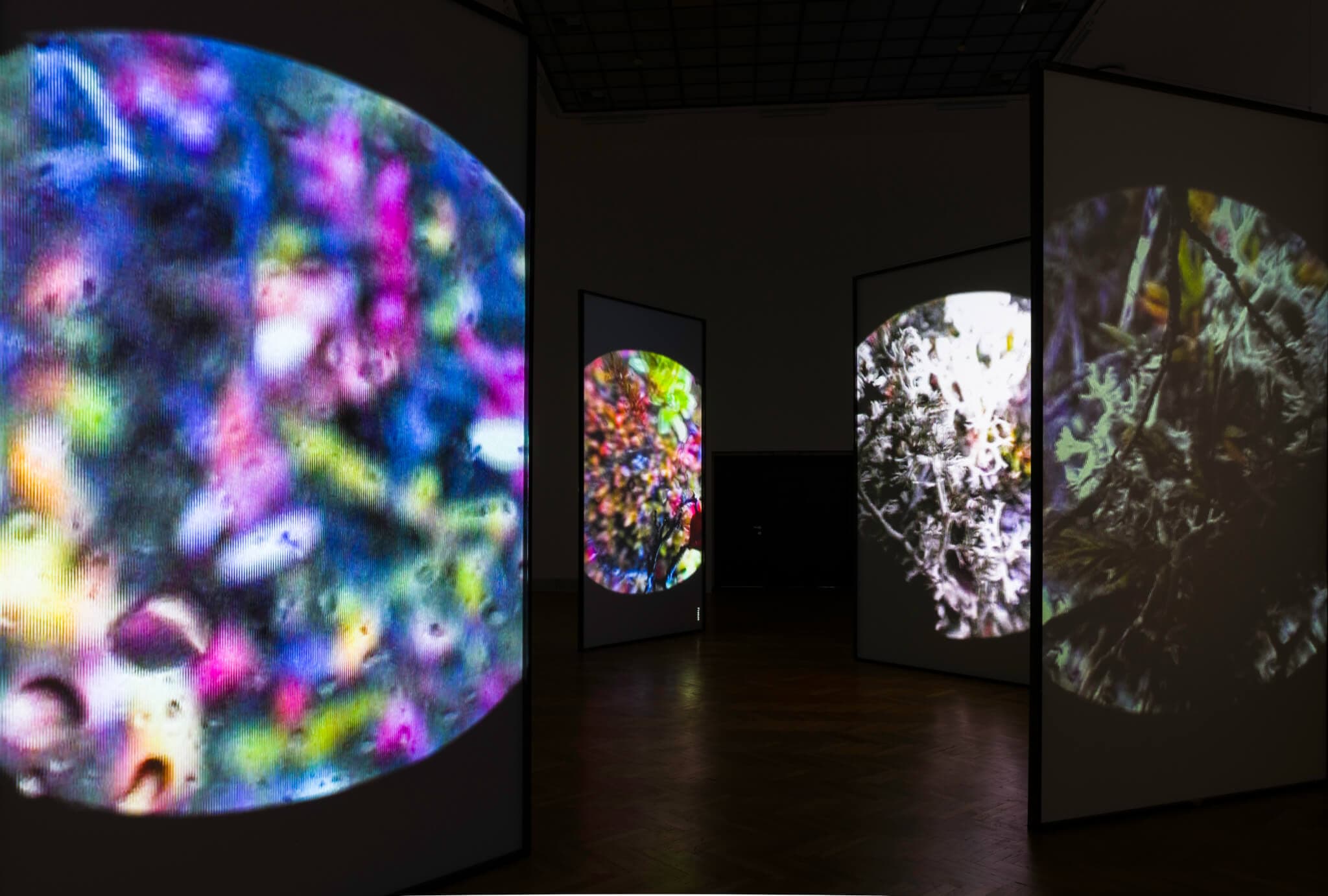 Steina, Borealis, 1993. Two-channel video, four-channel sound environment; 10 min. Installation view: Sums & Differences, House of Arts, Brno, 2023. Courtesy House of Arts, Brno. Photo courtesy of Miloš Strnad