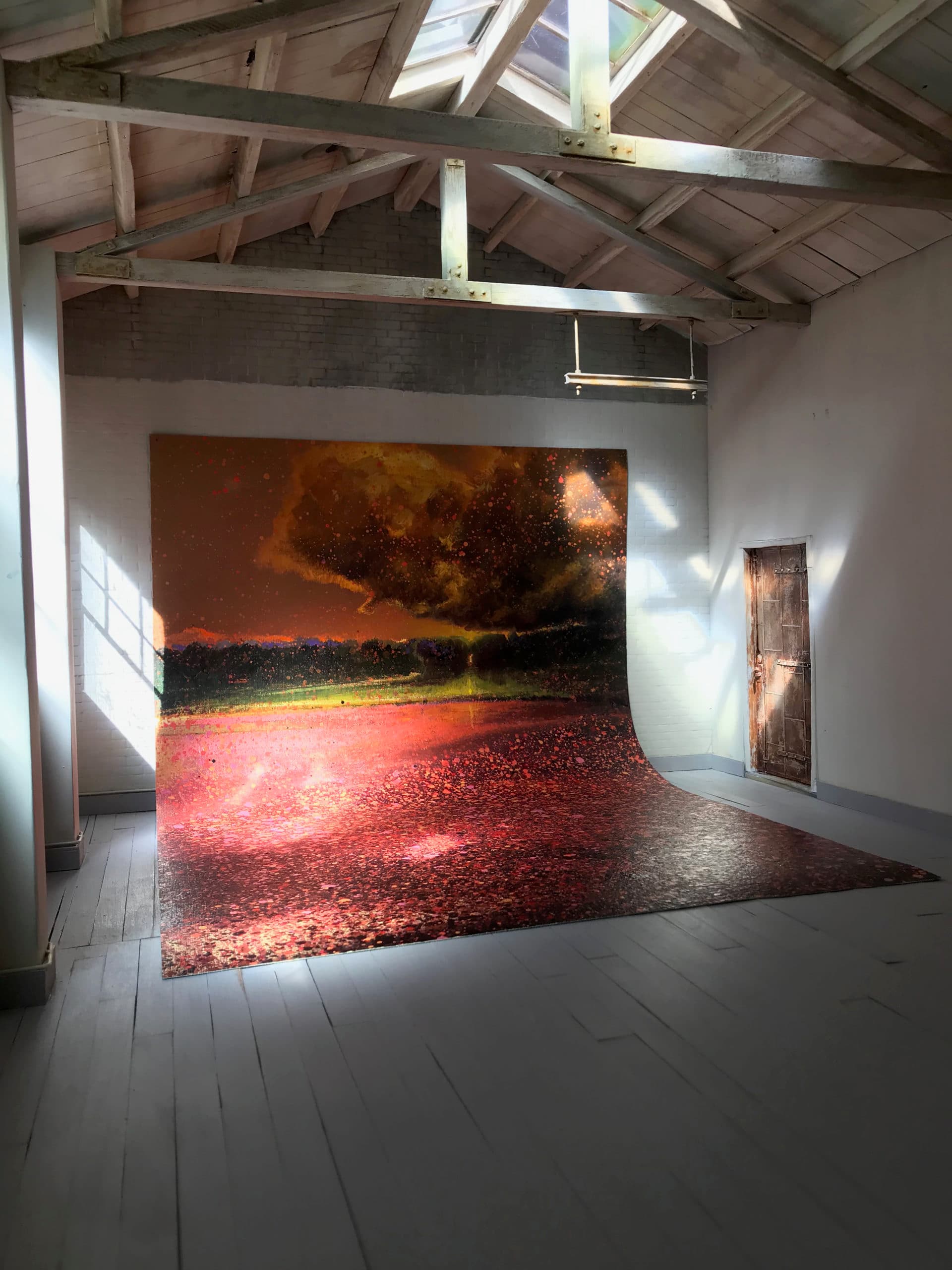 Wilhelm Neusser, Untitled (Large Bog for SIP), installation view, 2020. Oil on linen, 22” x 14.”