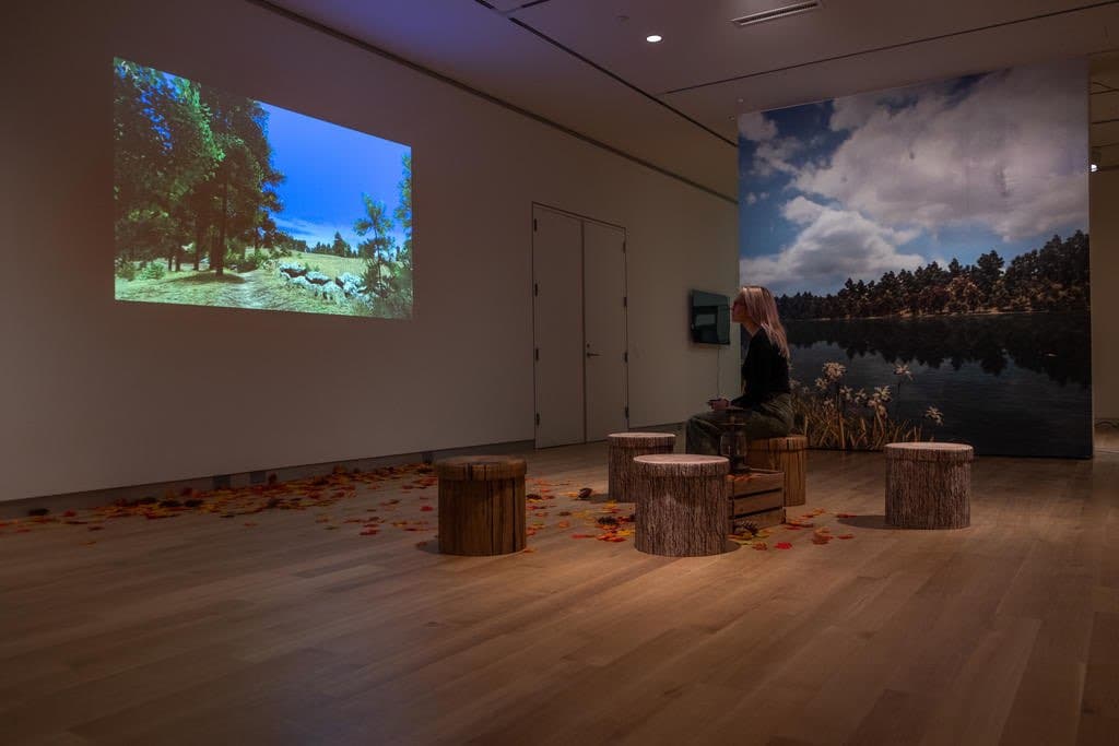 Tracy Fullerton, Walden, a Game, installation view as part of “Game Changers,” MassArt Art Museum, 2020. Photo by Daniel Berube ‘21. Courtesy of MassArt.