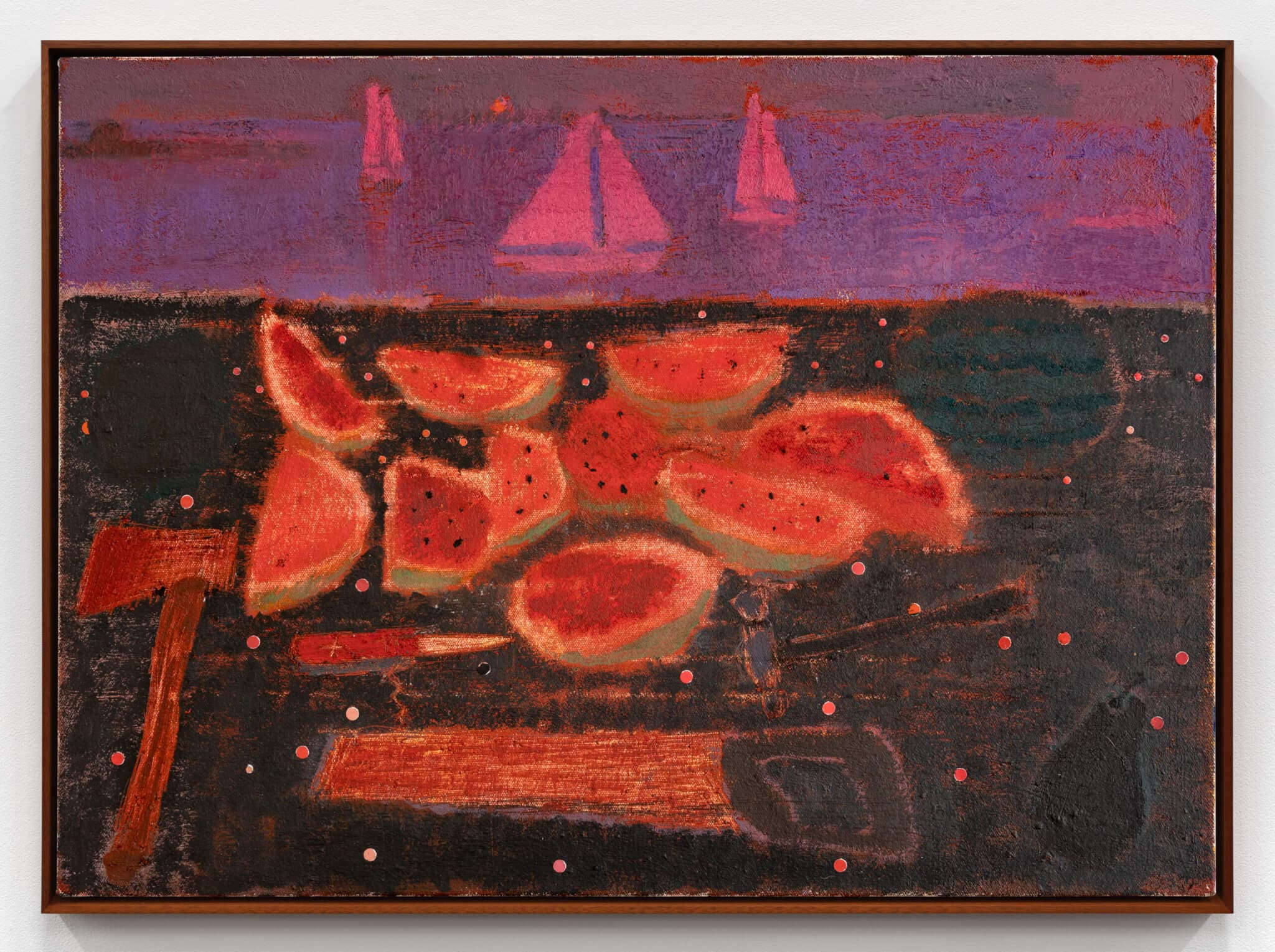 Suzanne Schireson, Watermelon Static, 2025. Oil on paper mounted on panel. 22 x 30 inches. Courtesy of Cade Tomkins Projects.