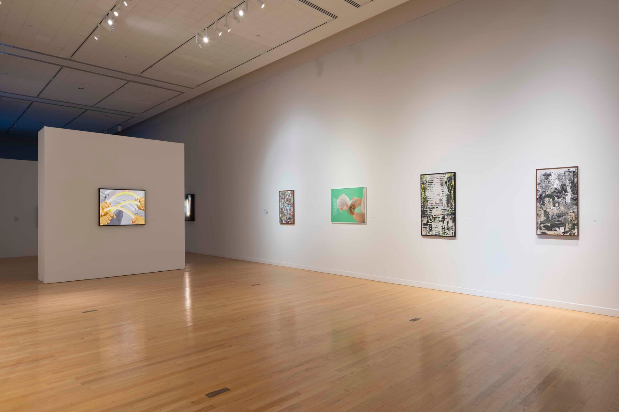 Presented by Tufts University Art Galleries, Jibade-Khalil Huffman’s Now That I Can Dance is the first solo exhibition of Huffman’s work in New England. Now That I Can Dance features over twenty collaged prints, videos, and lightbox “paintings” that date from 2014 to the spring and summer of 2020, when he developed The Circle, a video project now making its debut. The exhibition is on view to Tufts students and faculty at the Aidekman Arts Center on the Medford campus through March, but due to COVID closures, I visited the virtual exhibition constructed on Matterport, a virtual tour software platform. The materiality and meaning of the works in Now That I Can Dance translate beautifully into the digital space.