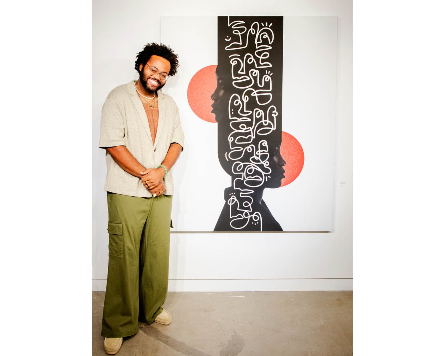 Ryan Horton standing in front of his 2022 piece "Ancestral Bonds." Photo by Josie Rybczyk. Courtesy of the artist.