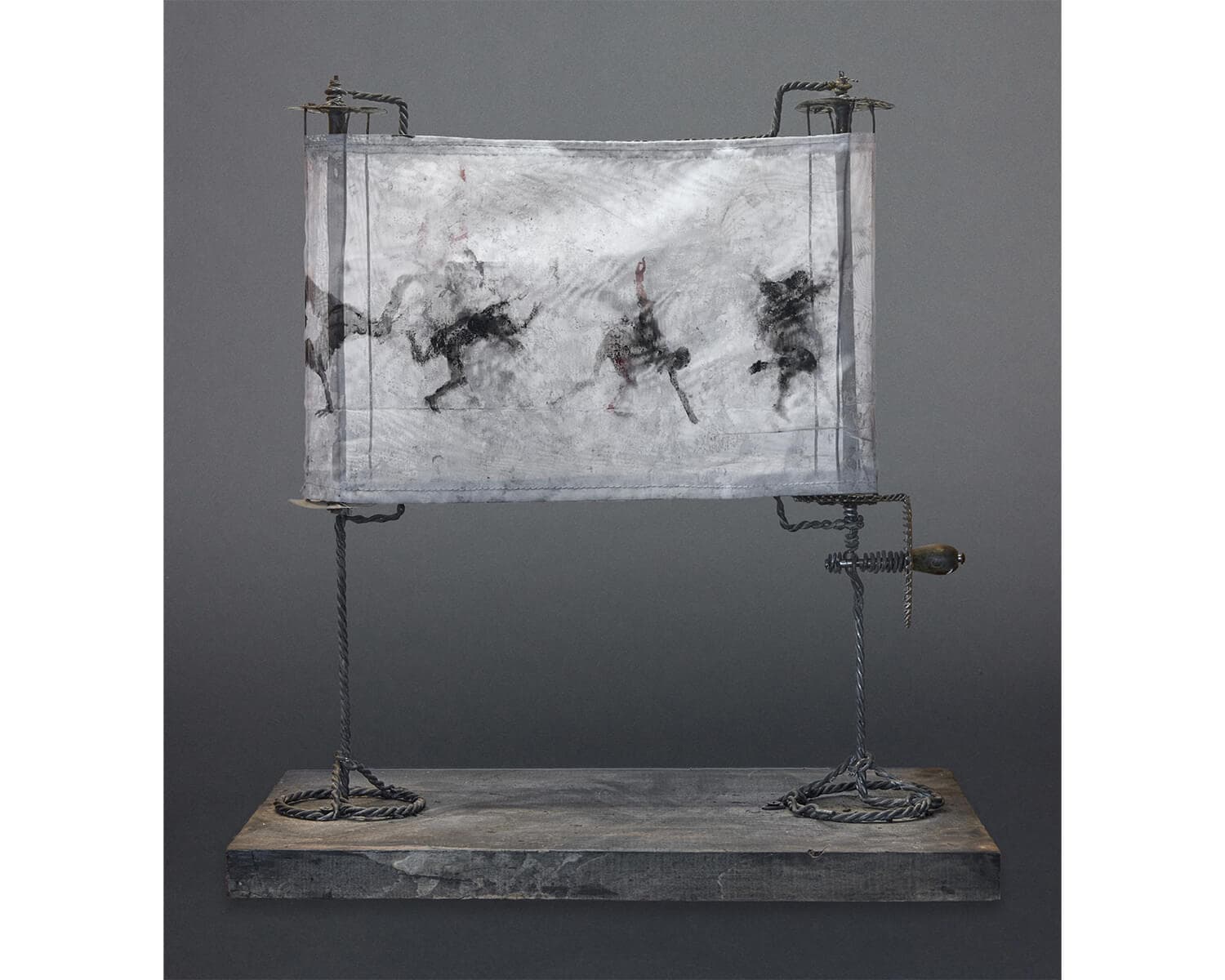 June Leaf, White Scroll with Dancing Figures, 2008. Tin, wood, wire, acrylic on fabric, and wood. 17 x 17 ¼ inches. Private Collection. Photo courtesy of Addison Gallery of American Art.